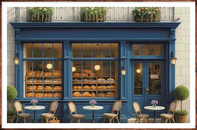 Kruissteek telpatroon van een traditionele bakkerij in de Provence.