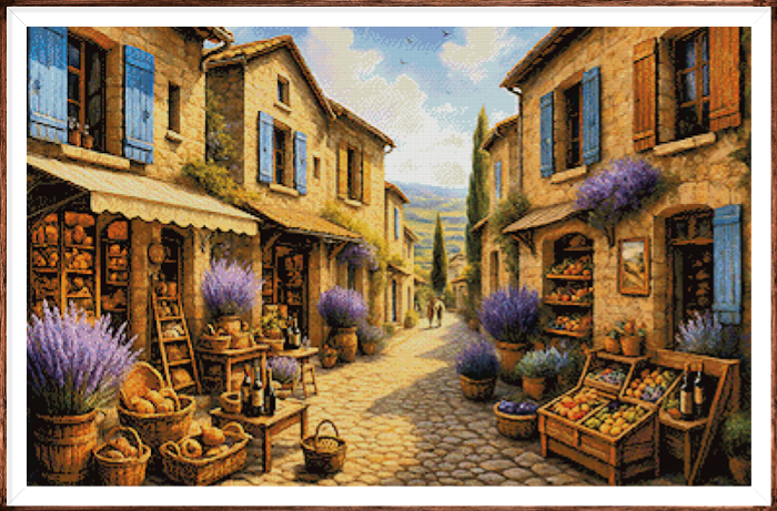 Kruissteek telpatroon van een charmant straatje in het zonnige Provence.