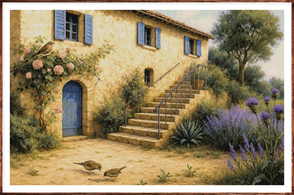 Kruissteek telpatroon van een sfeervol Italiaans tafereel dat doet denken aan vakantie.