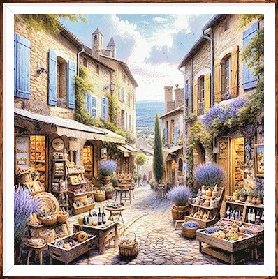 Kruissteek telpatroon van een sfeervol Provençaals steegje.