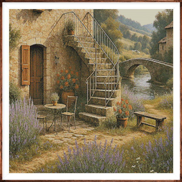 Kruissteek telpatroon van een stijlvol landhuis in de regio Savoye.