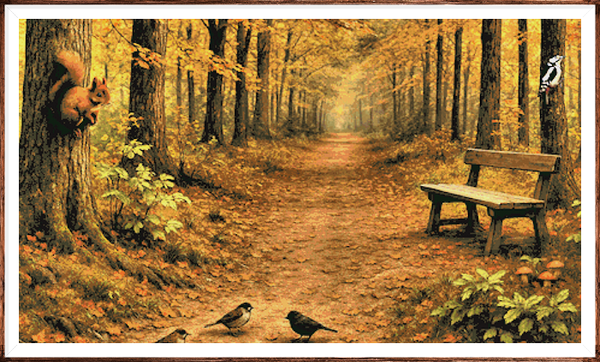 Kruissteek telpatroon van een bospaadje waar eekhoorns zich vaakbevinden.