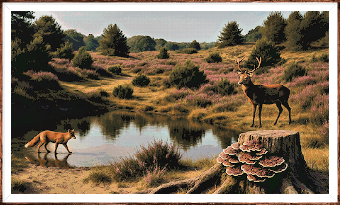 Kruissteek telpatroon van dieren die rusten in de avondschemering.