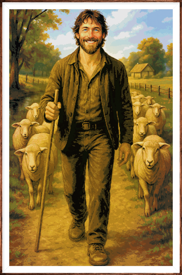 Kruissteek telpatroon van schapen die naar de wei worden geleid.