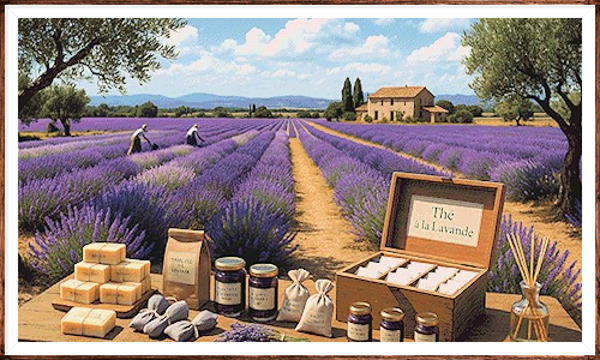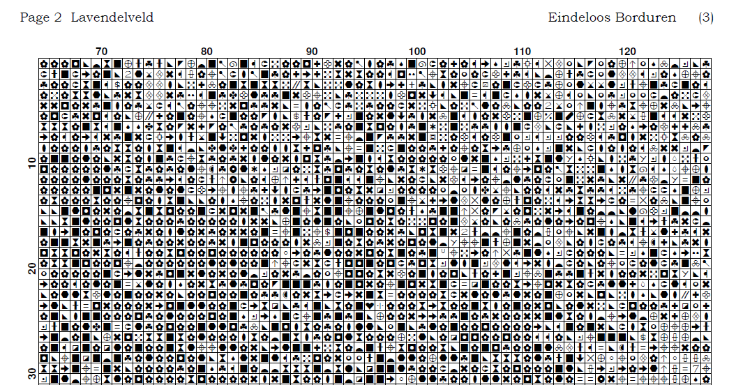 Kruissteek telpatroon van een uitgestrekt veld met bloeiende lavendel.
