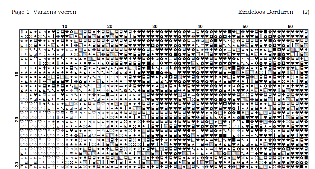 Kruissteek telpatroon van een boerenerf waar varkens worden gevoerd.